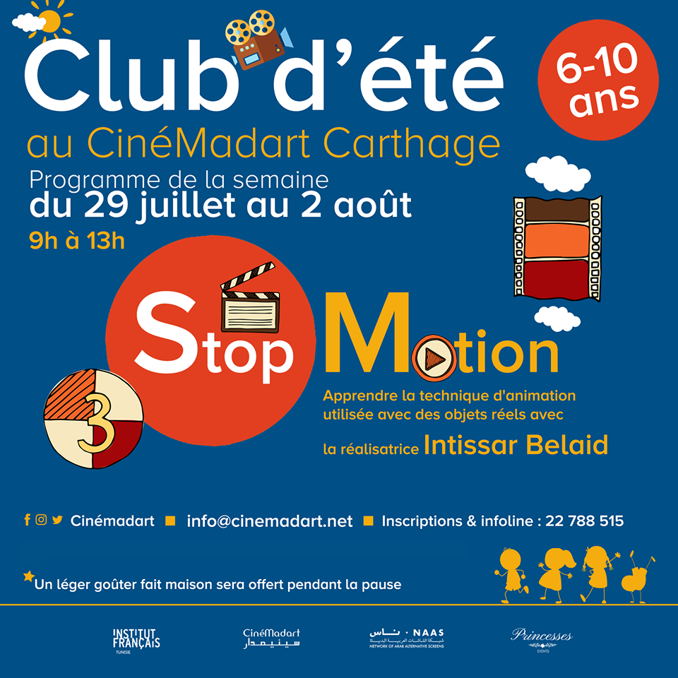 Le “club d’été” du CinéMadart propose des ateliers de Stop motion, photographie, cirque, danse… tandis que les ”ateliers d’été” de la Cinémathèque permettront aux participants, des tout petits jusqu'aux adolescents, de raconter leurs propres histoires, en apprenant à maîtriser des techniques liées au cinéma : l'esthétique, le blanc & noir, les couleurs, les points de vue, la lumière, les ombres, etc.